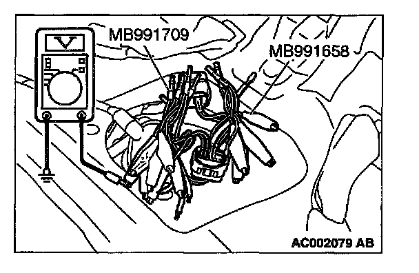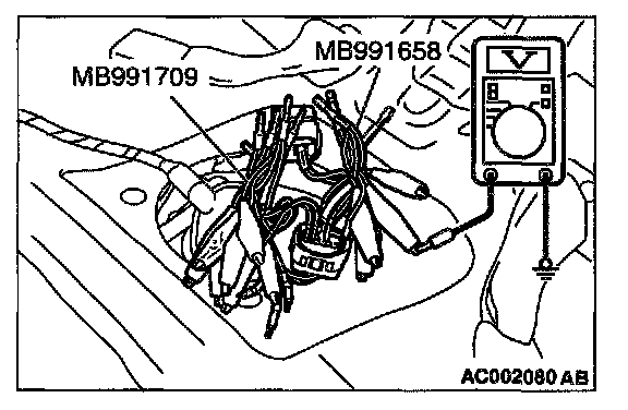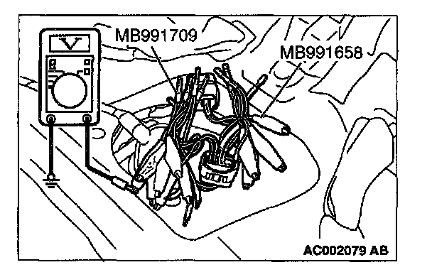 2. Use special tools (MB991658 and MB991709) to connect terminals 5, 6 and 8 between connectors of the intermediate connector, respectively.