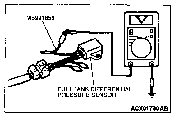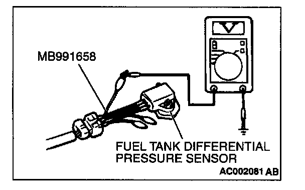 - To check a system blockage, do a performance test which uses a mechanical vacuum gauge and the scan tool MB991502 set on the fuel tank differential pressure sensor (TANK PRS SNSR73).