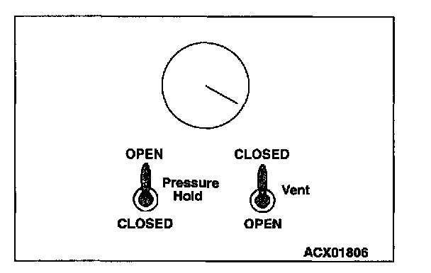 2. On the EVAP pressure pump, set the pressure/hold valve to OPEN, and set the vent valve to CLOSED.