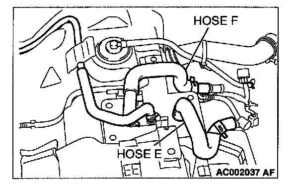STEP 23. Check for clogging in the evaporator line from hose E and hose F.