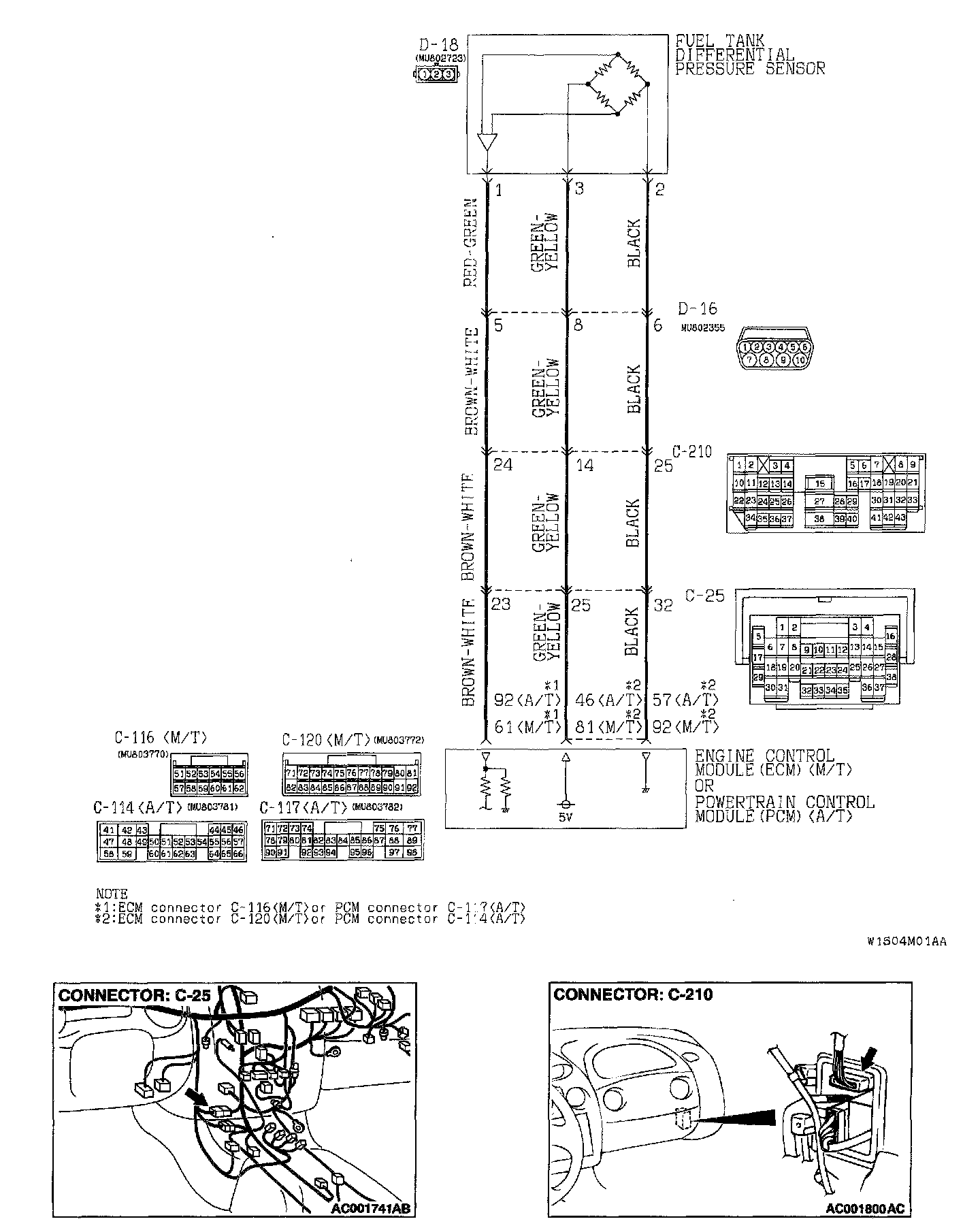 - A 5-volt voltage is supplied to the power terminal of the fuel tank differential pressure sensor (terminal 3) from the ECM (terminal 81)