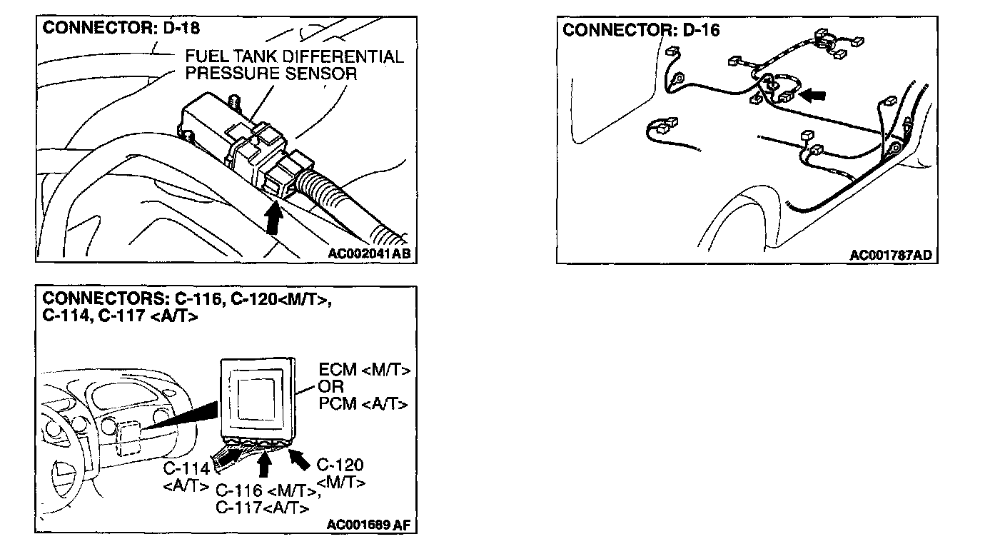 1. Disconnect fuel tank differential pressure sensor connector D-18 and intermediate connector D-16.