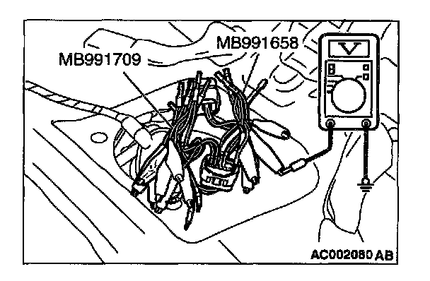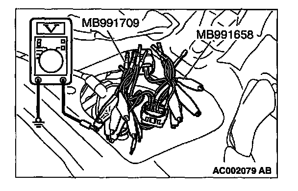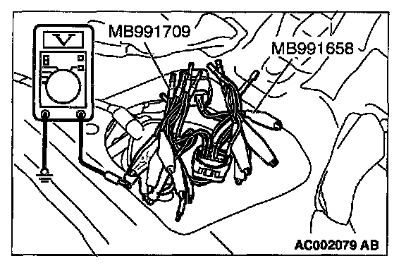 2. Use special tools (MB991658 and MB991709) to connect terminals 5, 6 and 8 between connectors of the intermediate connector, respectively.