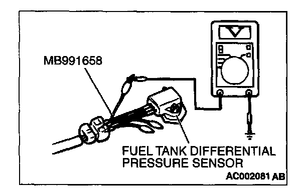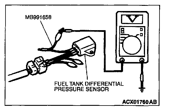- To check a system blockage, do a performance test which uses a mechanical vacuum gauge and the scan tool MB991502 set on the fuel tank differential pressure sensor (TANK PRS SNSR73).