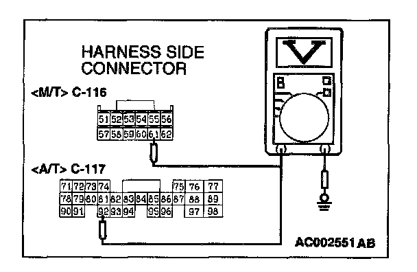 2. Use special tool (MB991658) to connect terminals 1,2 and 3 of the disconnected sensor connector and those of the harness side connector, respectively.
