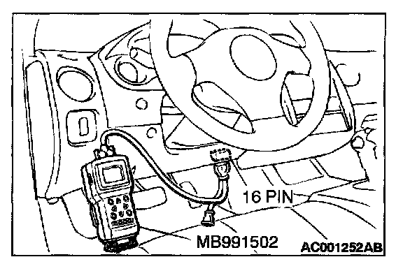 1. Connect scan tool MB991502 to the data link connector.