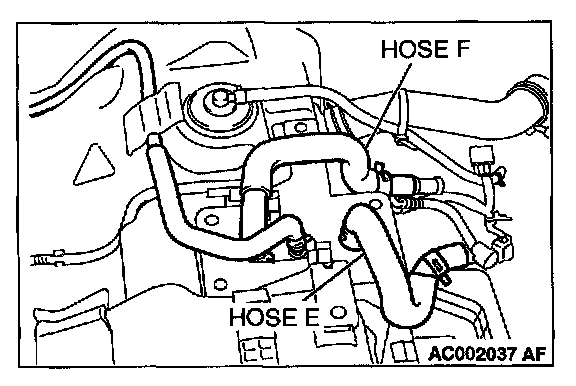 STEP 23. Check for clogging in the evaporator line from hose E and hose F.