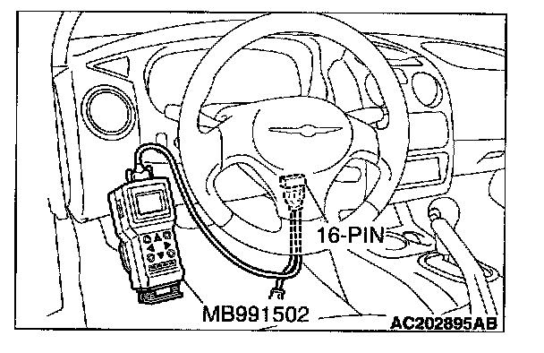 1. Connect scan tool MB991502 to the 16-pin data link connector.