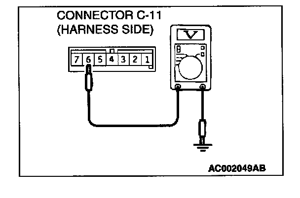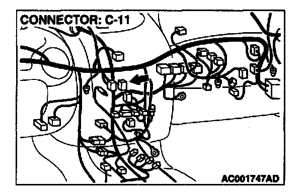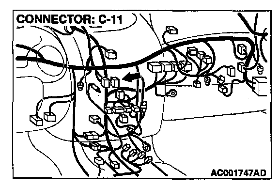 STEP 2. Check radio, tape player, CD player and CD auto changer connector C-11 for damage.