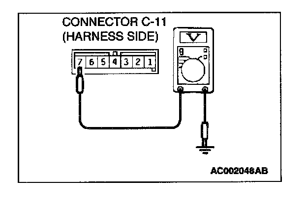 2. Measure the voltage between terminal number 7 and ground by backprobing.