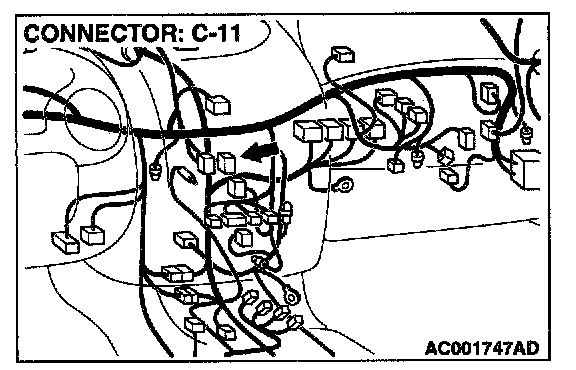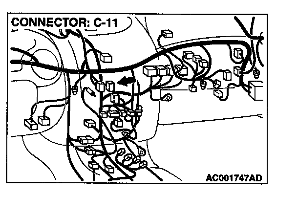 STEP 2. Check harness connector C-11 at the radio, tape player, CD player and CD auto changer for damage.