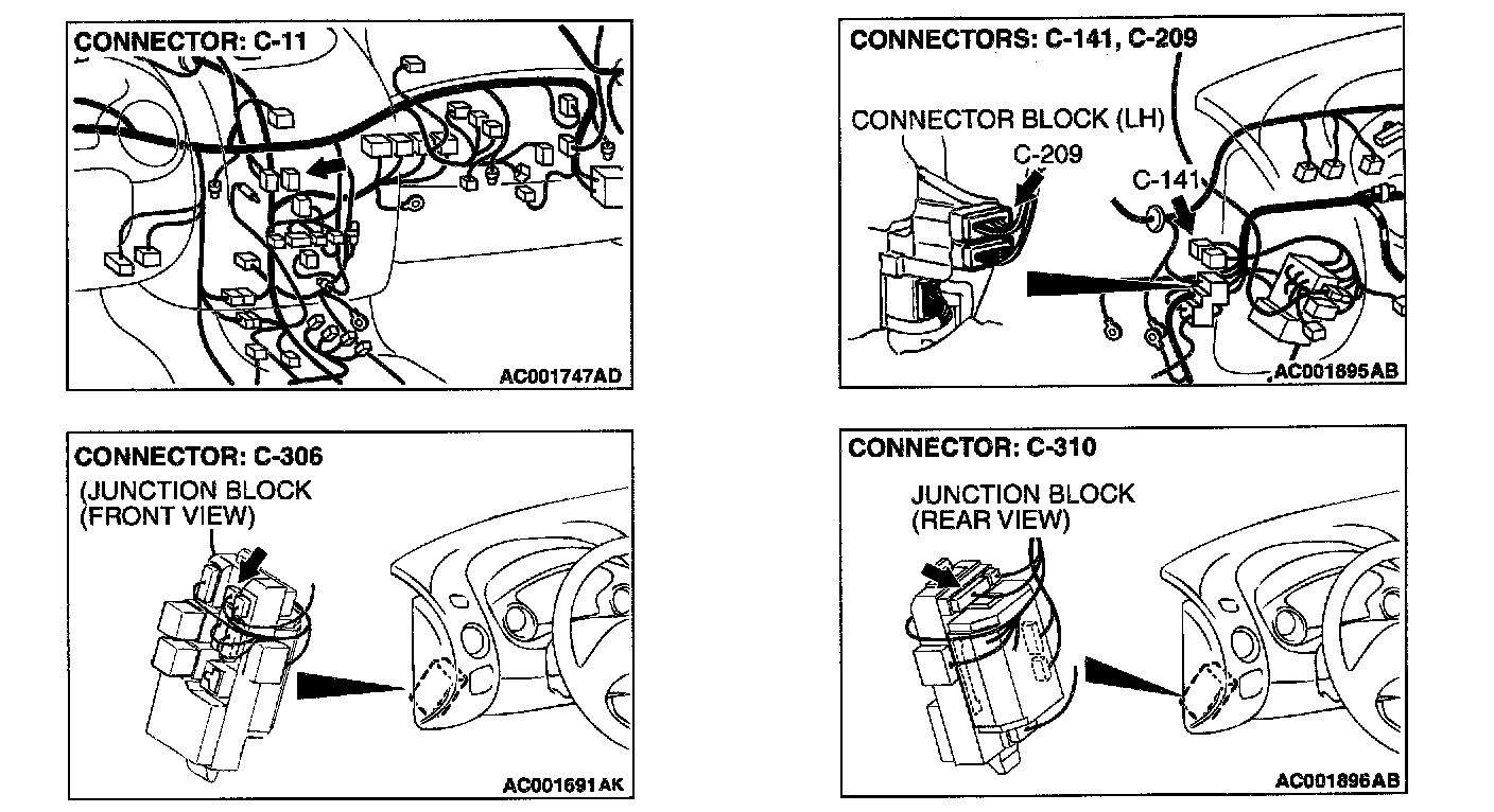 NOTE: After inspecting intermediate connector C-209, joint connector C-141, junction block C-306 and C-310, inspect the wire. If intermediate connector C-209, joint connector C-141, junction block C-306 and C-310 are damaged, repair or replace them. Refer to Harness Connector Inspection.