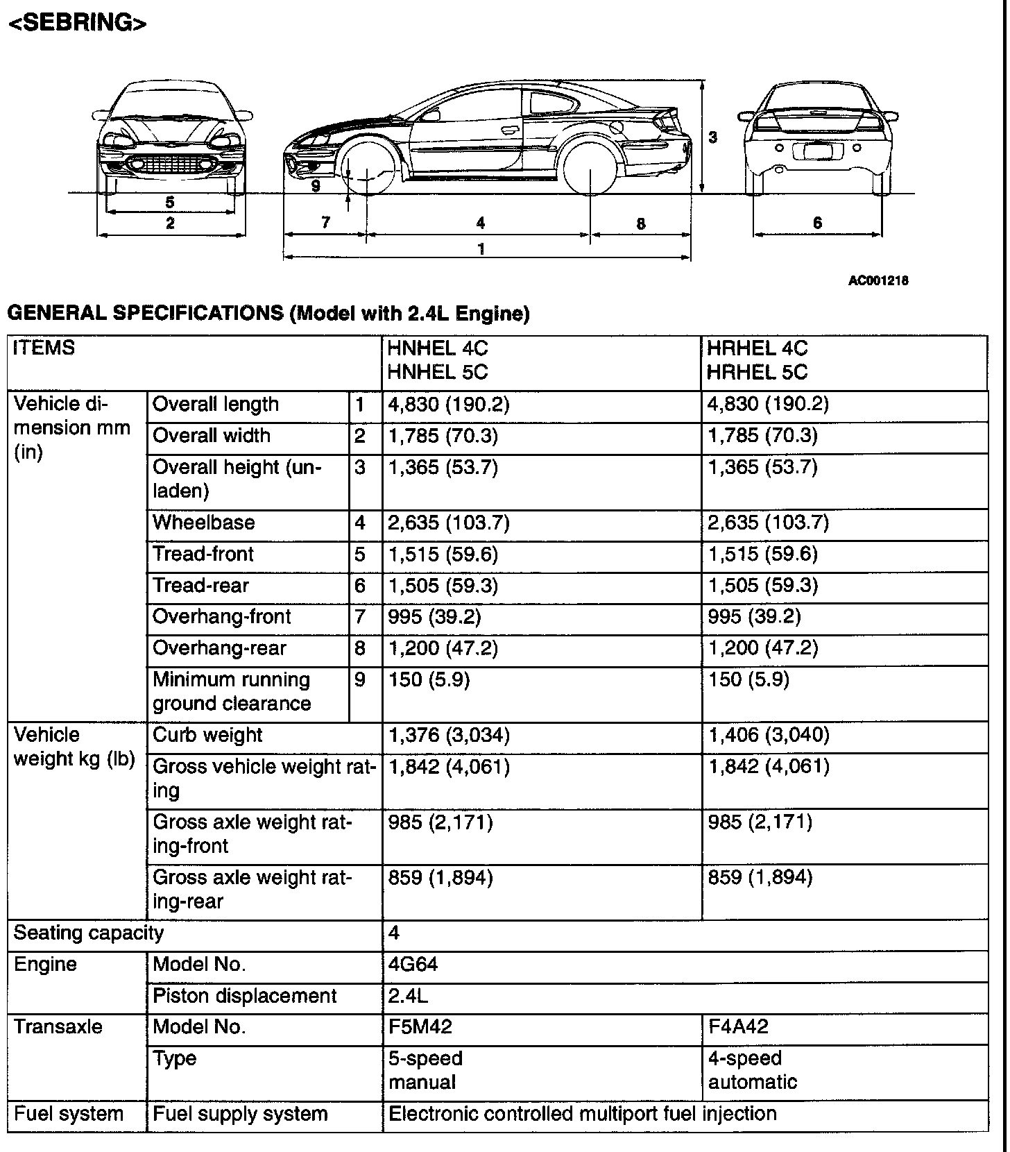 Sebring Coupe L4-2.4L VIN G