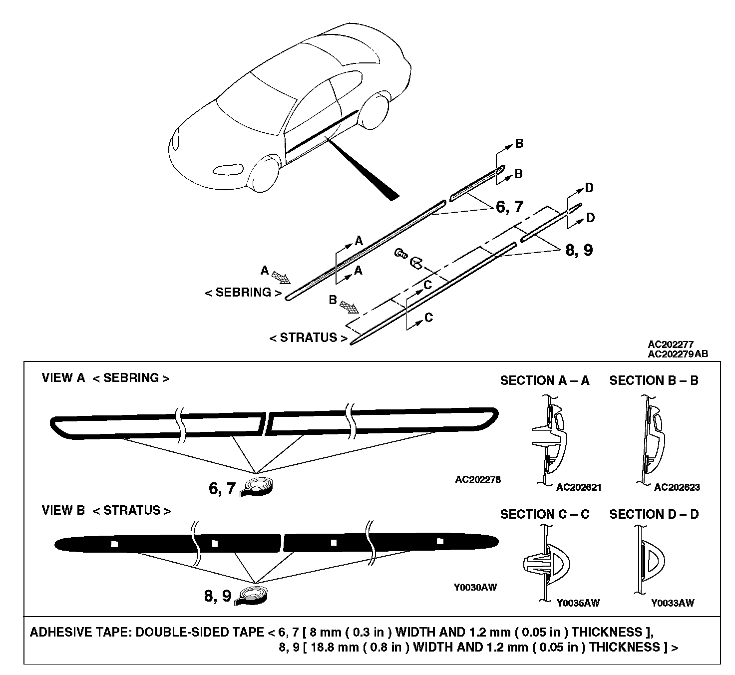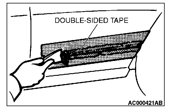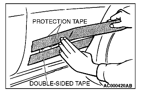 NOTE: If the double-sided tape is difficult to affix in cold temperature, etc., warm the bonding surfaces of the body and the protect molding to about 40 - 60 degrees C (104 - 140 degrees F) before affixing the tape.