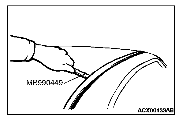 Use special tool MB990449 to pry out the molding.