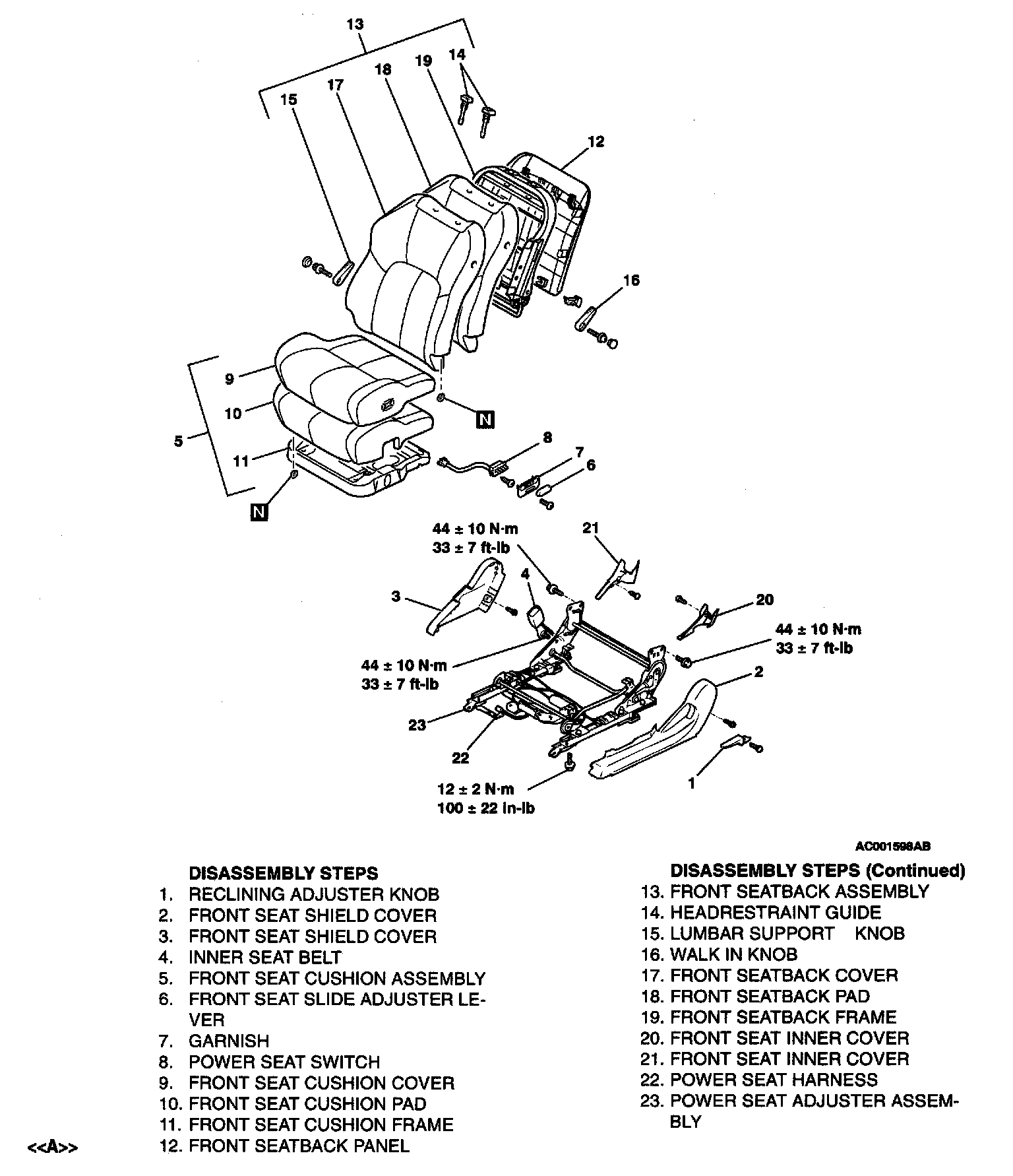 1. Using a screwdriver or similar tool, push in the clip of the front seatback panel lower portion to remove it.