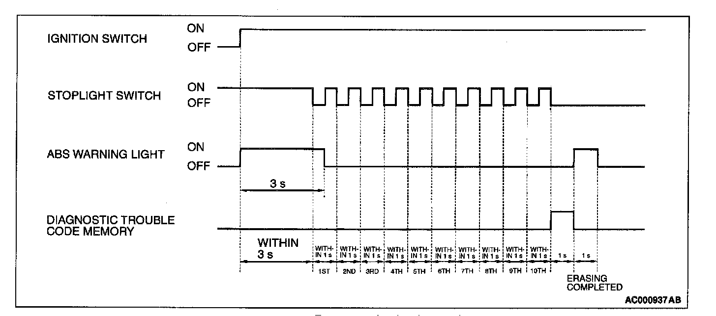 NOTE: If the ABS-ECU functions have stopped due to the fail-safe function, the diagnostic trouble code cannot be erased.