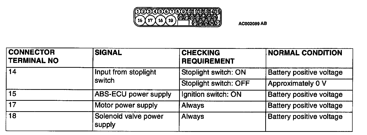 TERMINAL VOLTAGE CHECK CHART1. Measure the voltages between terminals (16) and (19) (ground terminals) and each respective terminal.