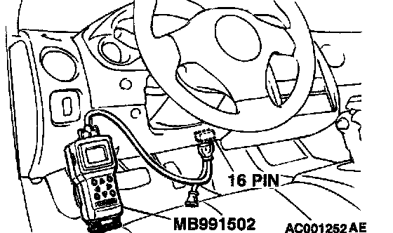 1. Connect scan tool MB991502 to the data link connector.