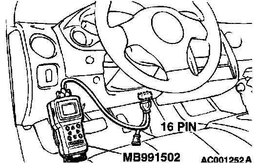 1. Connect scan tool MB991502 to the data link connector.