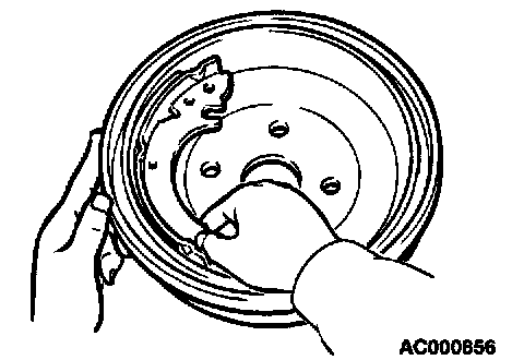 3. Chalk the inner surface of the brake drum and rub with the shoe and lining assembly.