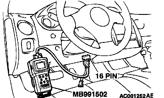 To prevent damage to scan tool MB991502, always turn the ignition switch to the "LOCK" (OFF) position before connecting or disconnecting scan tool MB991502.