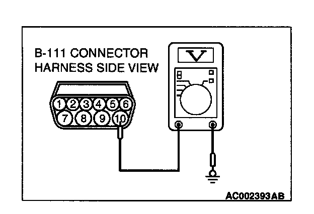 3. Measure the voltage between terminal 10 and ground by backprobing.