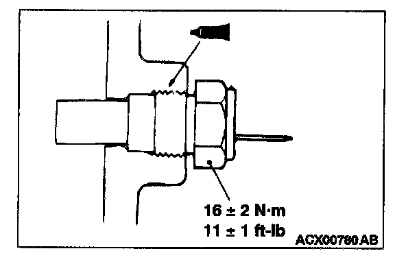 5. After checking, apply the MOPAR(R) Part No.4318034 or equivalent around the threads of the engine coolant temperature gauge unit.