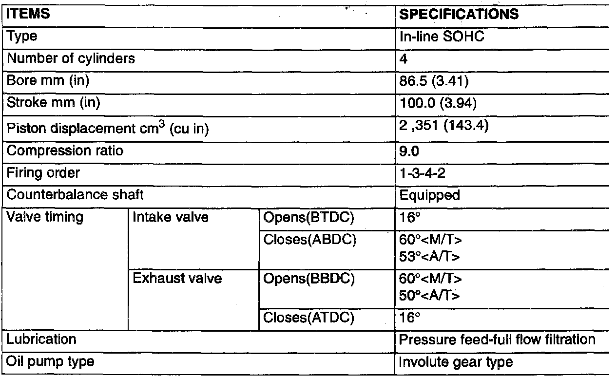General Engine Specifications