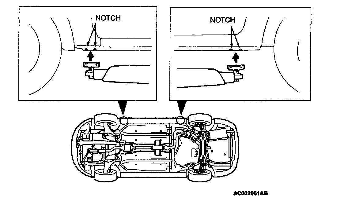 - For lifting, put rubber or similar material between the side sill and rigid rack, or the side sill area will be damaged.