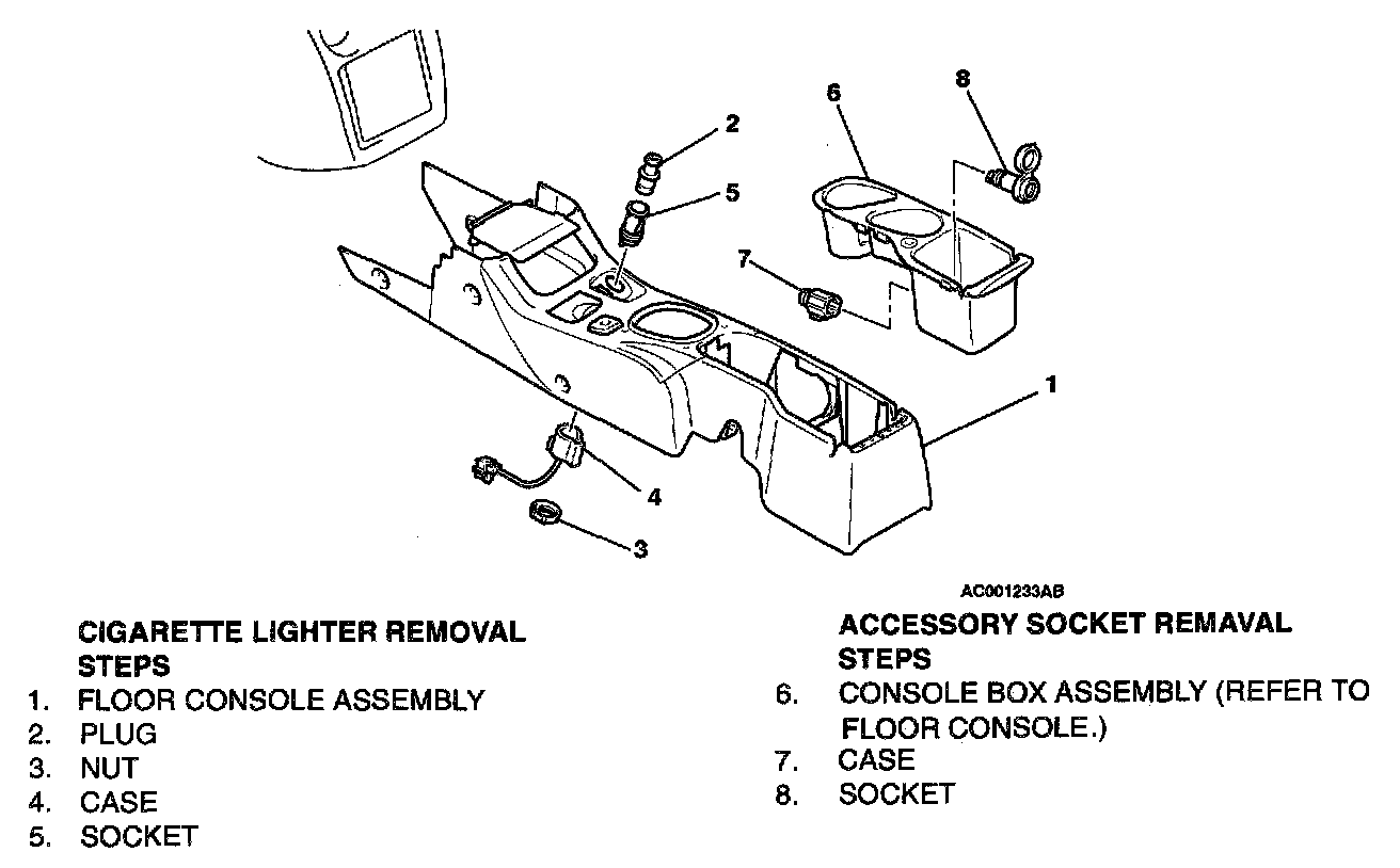 Cigarette Lighter, Accessory Socket - Removal And Installation: