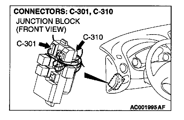 NOTE: After checking intermediate connector C-212 and junction block connectors C-310 and C-301, check the wires. If intermediate connector C-212 and junction block connectors C-310 and C-301 are damaged, repair or replace them. Refer to Harness Connector Inspection.