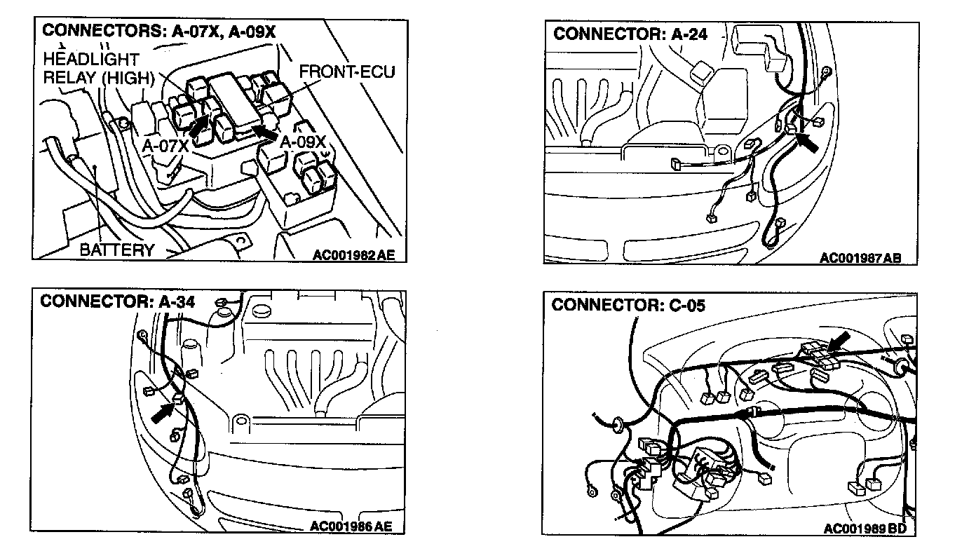 STEP 10. Check headlight connectors A-24 and A-34 for damage