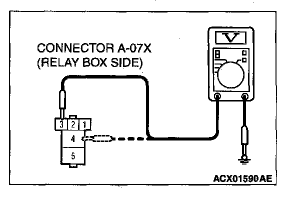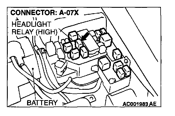 1. Disconnect the headlight relay (high) connector A-07X and measure at the relay box side.