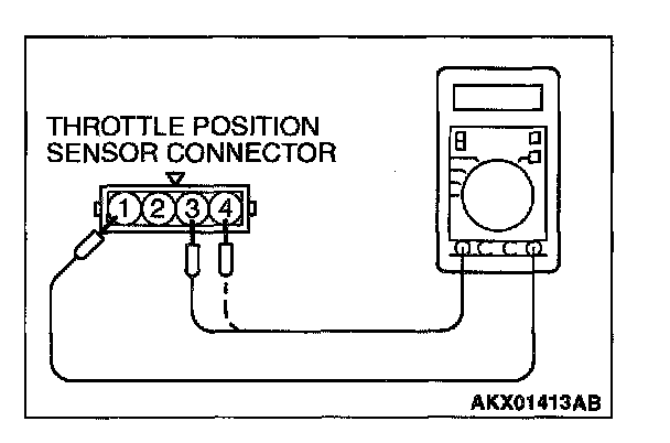 3. Measure resistance between the throttle position sensor side connector terminal 1 and terminal 3.