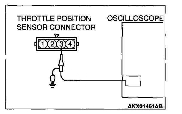 2. Connect the oscilloscope probe to the throttle position sensor side connector terminal 3.