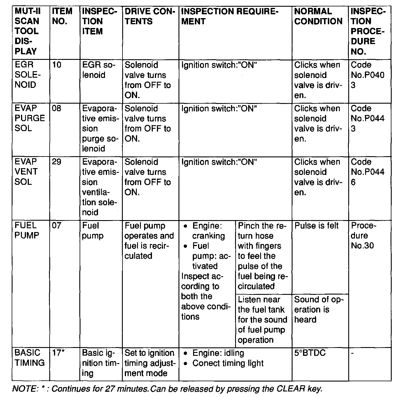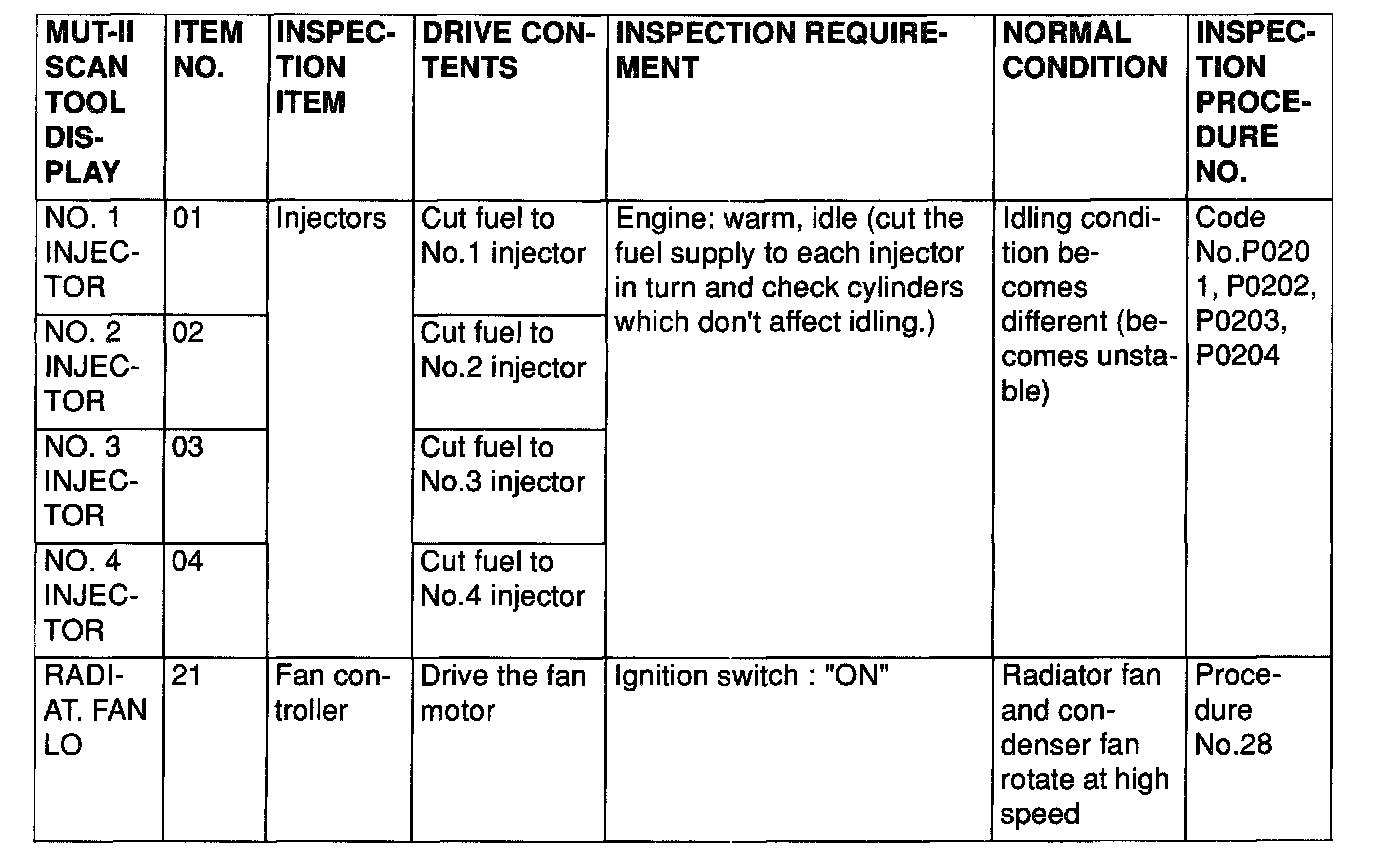 Actuator Test Reference Table (Part 2 Of 2):