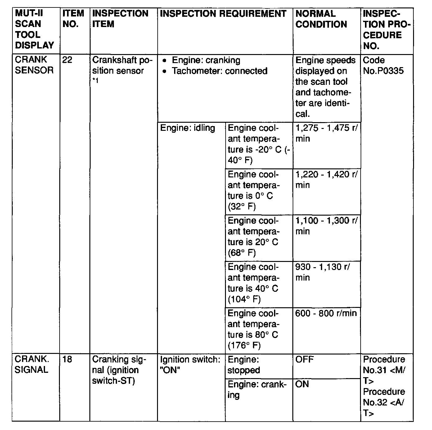 NOTE: *3: The injector drive time represents the time when the cranking speed is at 250 r/min or below when the power supply voltage is 11 volts.