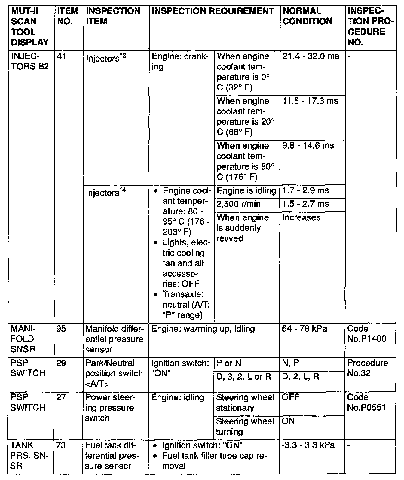 NOTE: *4: In a new vehicle [driven approximately 500 km (311 mile) or less], the injector drive time is sometimes 10% longer than the standard time.
