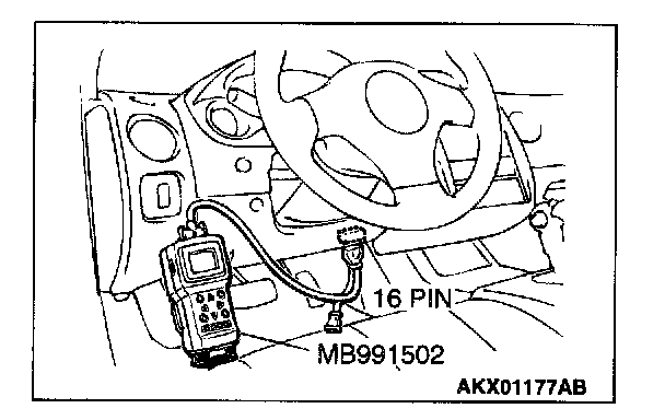 1. Connect scan tool MB991502 to the data link connector.