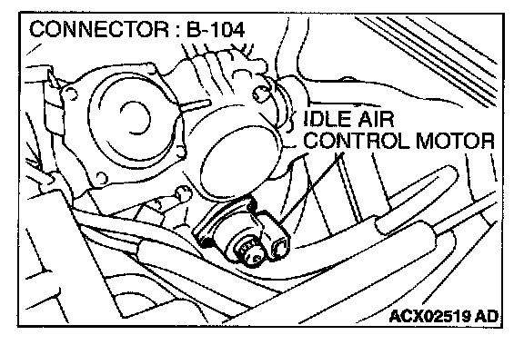 2. Check that the operation sound of the IAC motor can be heard after the ignition is switched to the "ON" position (but without starting the engine).