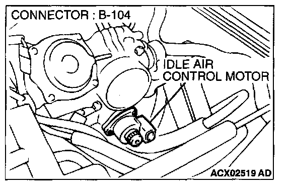 2. Check the operation sound of the IAC motor can be heard after the ignition is switched to the "ON" position (but without starting the engine).