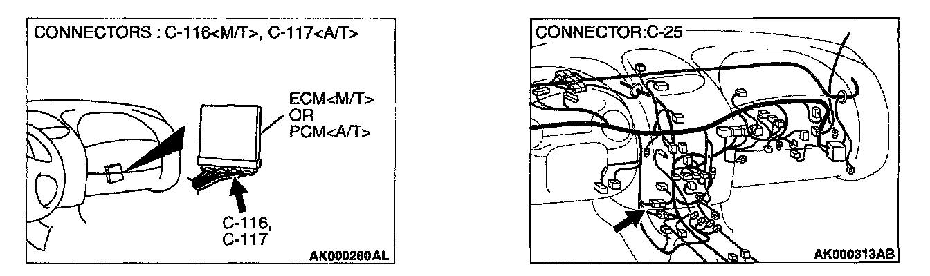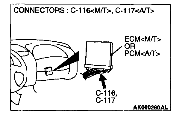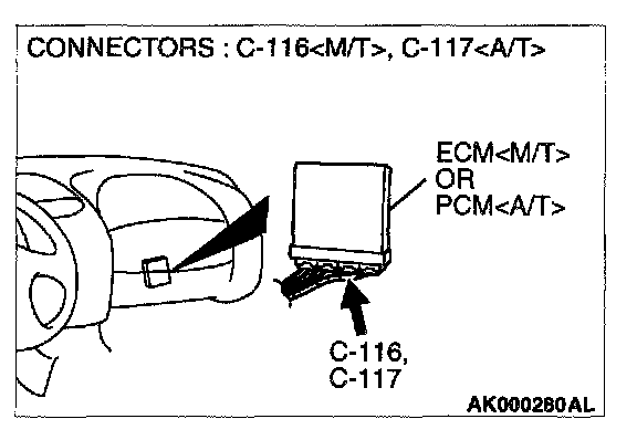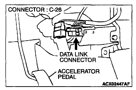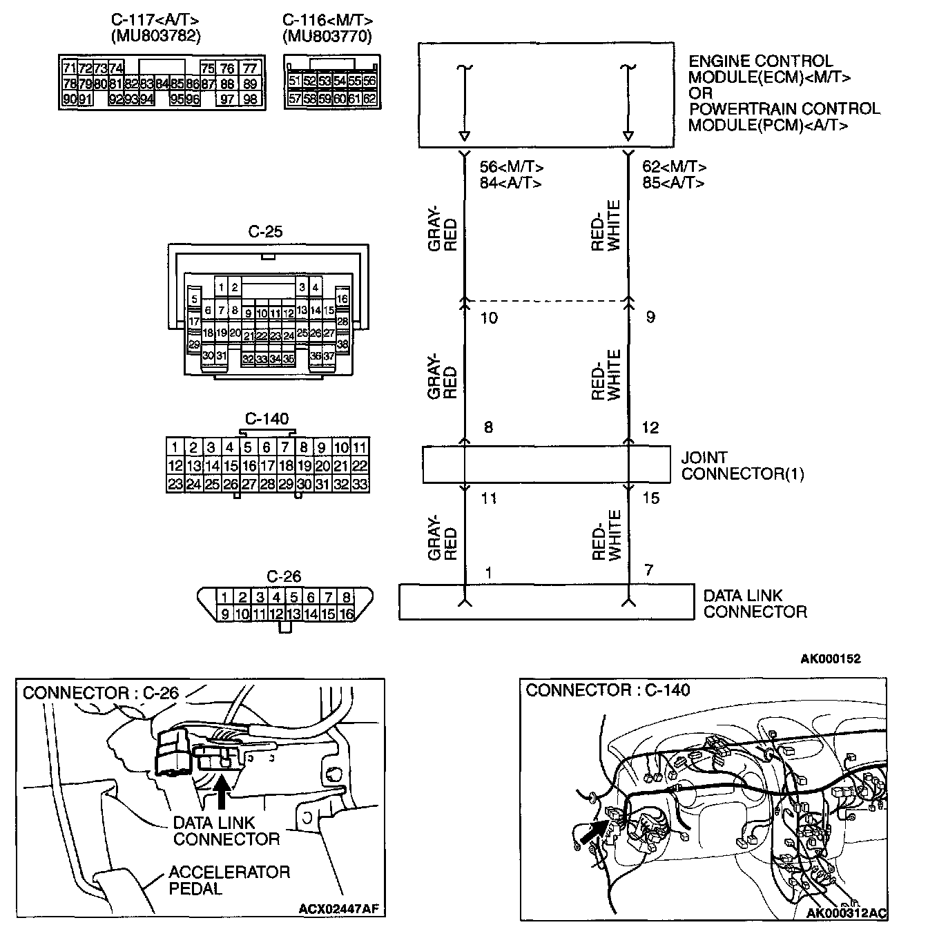 STEP 2. Check for open circuit, short circuit to ground and harness damage between data link connector C-26 terminal 1 and ECM connector C-116 terminal 56