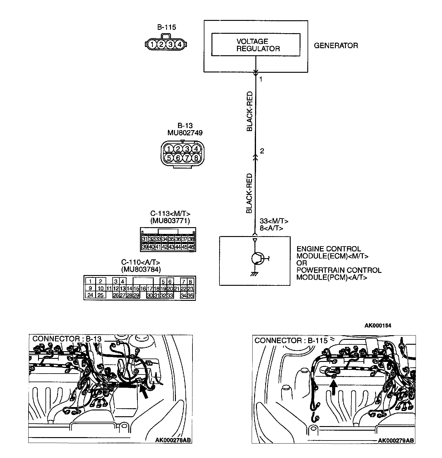 Generator output voltage is low (approximately 12.3 volts)Connectors: