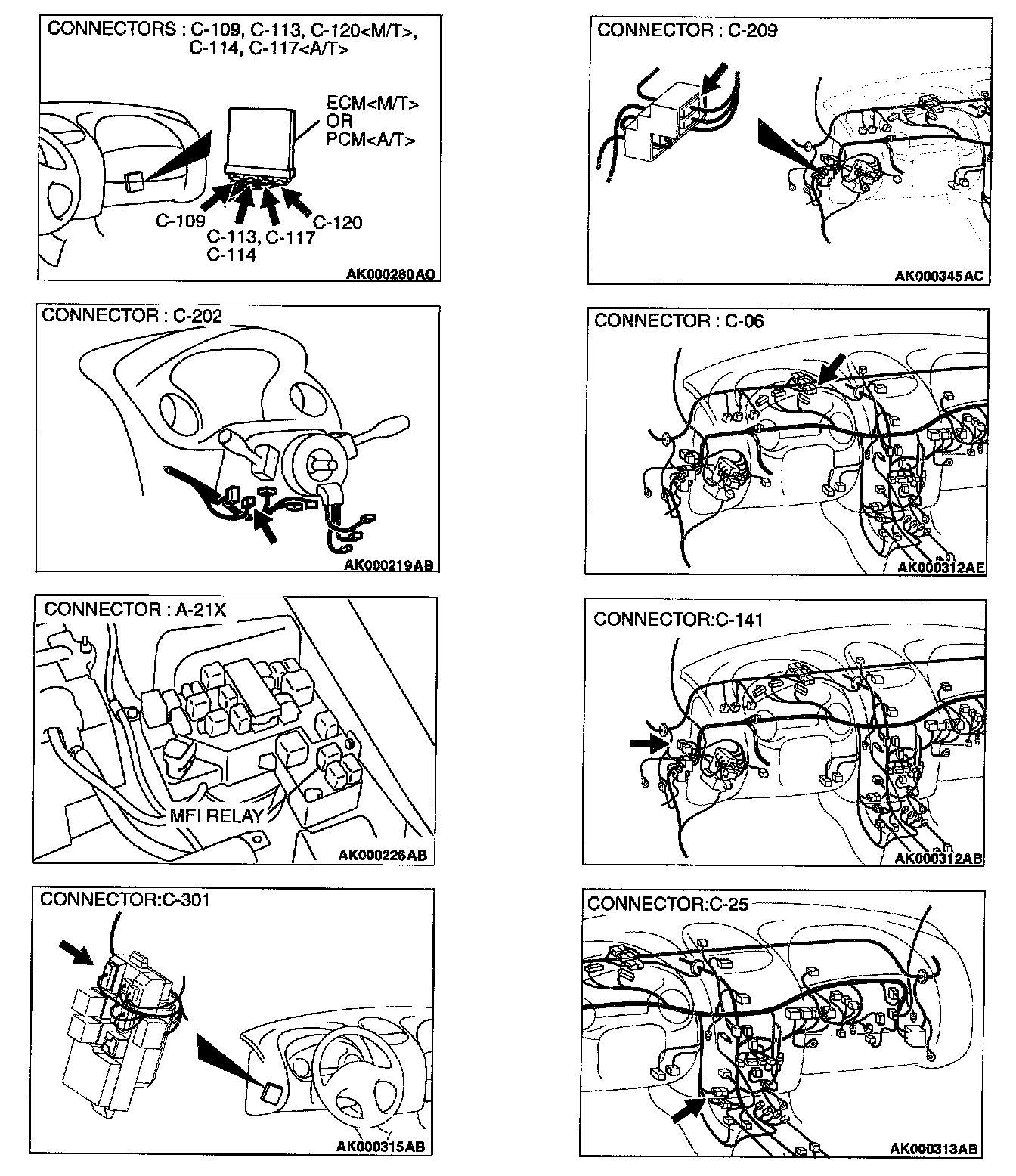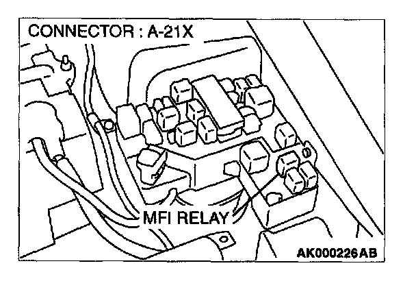 STEP 1. Check connector A-21X at MFI relay for damage.