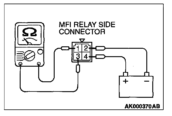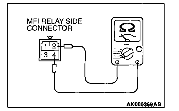 2. Check for continuity between the MFI relay terminals 2 and 4.