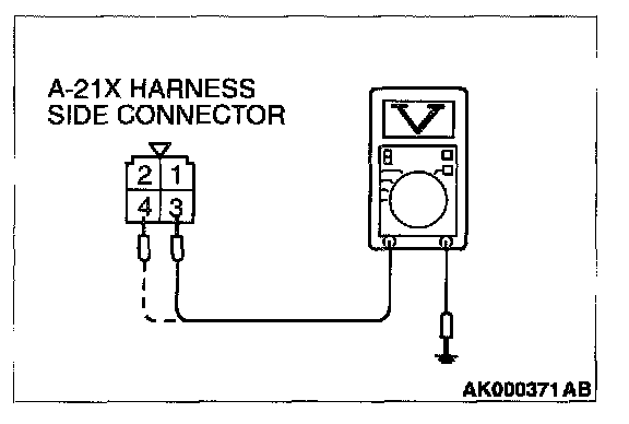 1. Disconnect the connector A-21X and measure at the harness side.