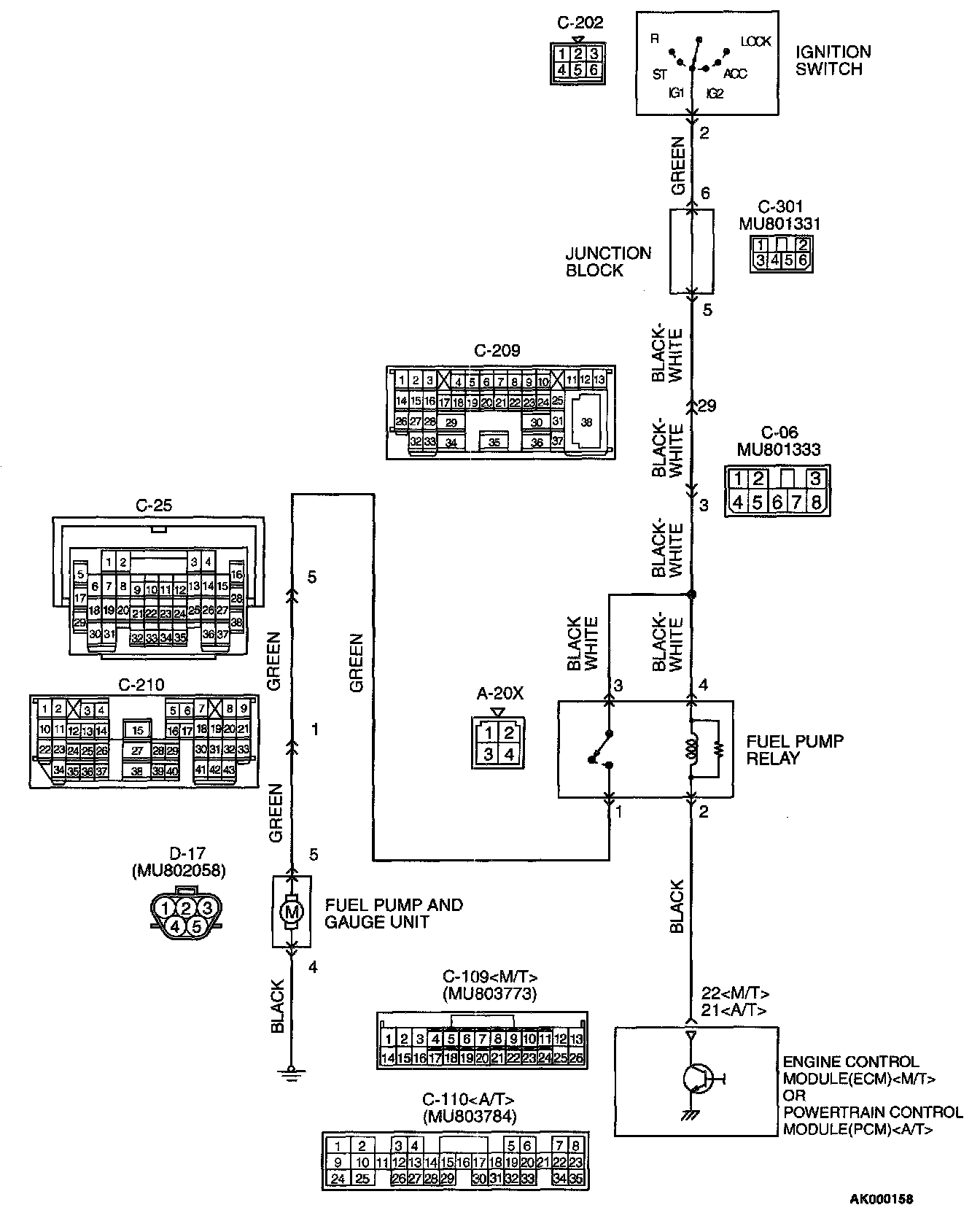 - A battery positive voltage is applied on the fuel pump relay (terminal 3, 4) from the ignition switch-IG.