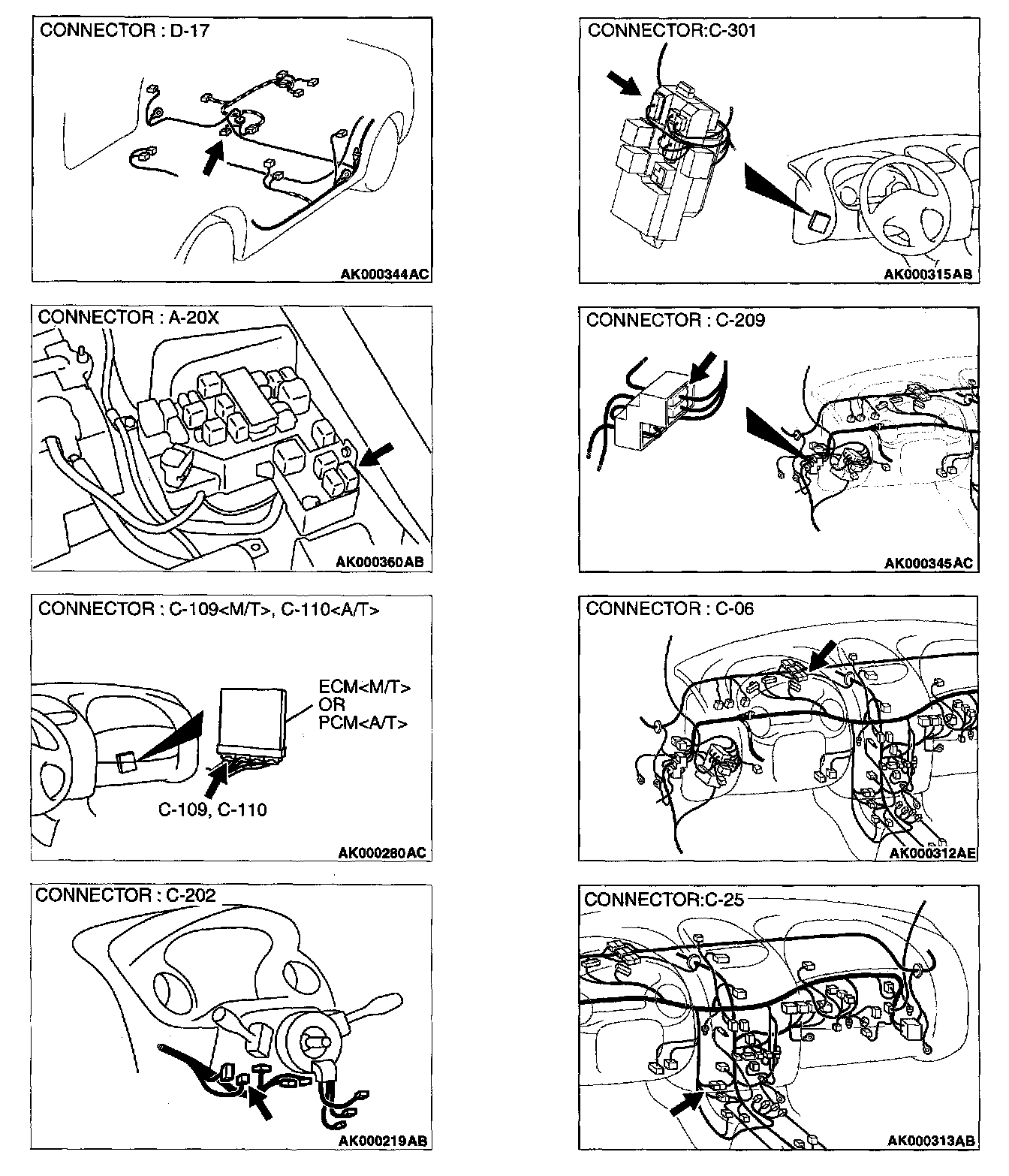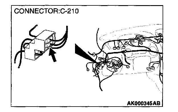 NOTE: Check harness after checking intermediate connectors C-25 and C-210. If intermediate connectors are damaged, repair or replace them. After to Harness Connector Inspection. Then check that the malfunction is eliminated.