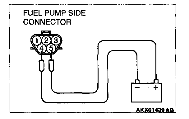2. Use jumper wires to connect fuel pump connector terminal 5 to the positive battery terminal and terminal 4 to the negative battery terminal.